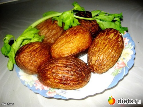 Да же этот продукт можно сделать менее калорийным. Спросите как? Очень просто, перед жаркой примерно за 6 часов замочите картофель в воде, так он потеряет значительное количество крахмала, а вы не приобретете