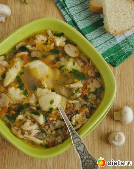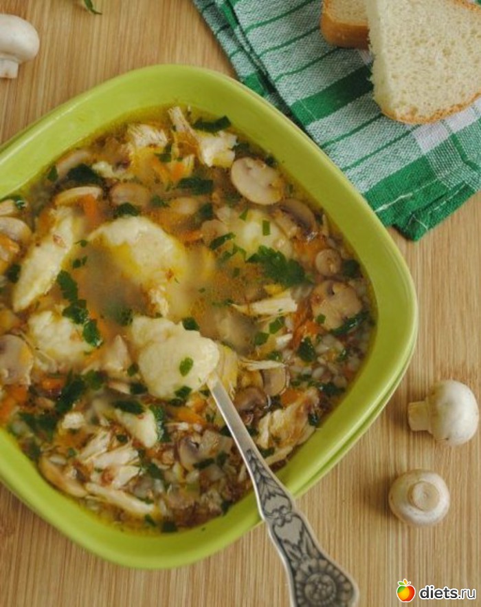 Гречневый суп с грибами и картофельными клецками