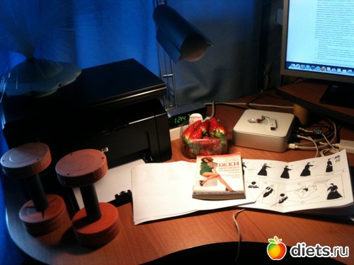 Вскочили, скорее обливание, зарядка (кручусь я на пятке больной ноги), завтрак (2 вареных яйца, кофеек и 50 грамм "маасдама" - по калохам вписывается, по объему - тоже