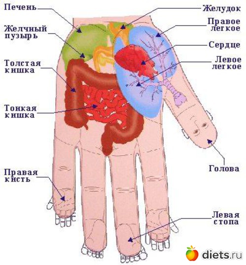 Если кончики пальцев приобрели пурпурный цвет, надо заняться пищеварительной системой. Темно-красный или даже лиловый - следует обратить внимание на почки и печень. Пятна на буграх Венеры (так хироманты называют возвышенные основания больших пальцев) - возможный признак того, что не все в порядке с половыми органами.
