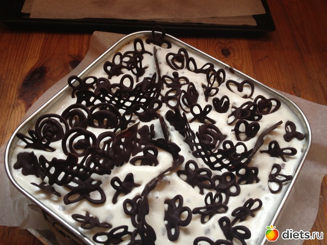 Чтобы придать ленте волнистость - после того как шоколад чуть "схватится" (через минутку/другую после того, как рисунок нанесен) уложить ленточку, например, на положенный боком бокал