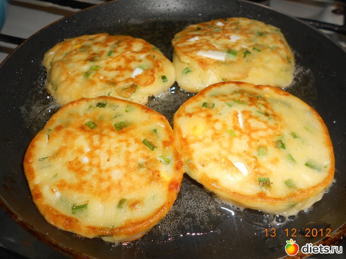 Это блюдо конечно не диетическое, но очень вкусное и быстрое! По вкусу похоже на пирожки с начинкой из яиц и зеленого лука.