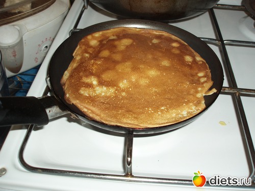 И так, делаем 6 тонких омлетов из 4 яиц, муки и молока. У меня была блинная небольшая сковородка и масло нужно было только смазать дно.