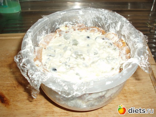 На ночь ставим в холодильник. В первоисточнике в майонез добавлялся желотин, но и без него все удалось.