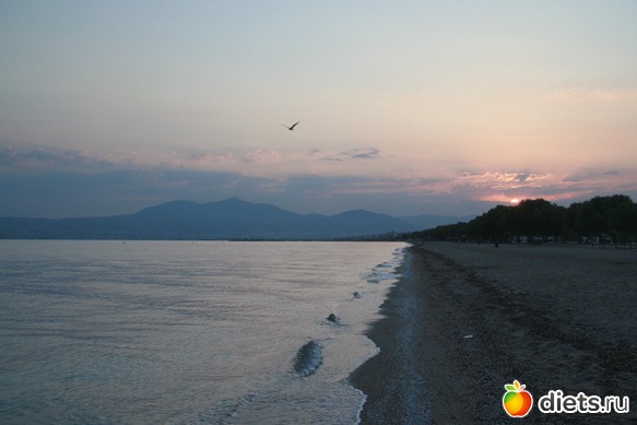 Мне эта идея пришлась по душе, и я стала прогуливаться каждое утро по бульвару, благо, была весна. Со временем просто так гулять стало скучновато, поэтому я стала гулять быстро. И даже очень быстро. И перешла на спортивную ходьбу. Это мне очень понравилось, и я стала ходить везде, где получится. В смысле, если куда ехала в командировку или в отпуск, стала брать с собой хорошие кроссовки и удобную форму. Самое любимое место для ходьбы для меня нашлось в поселке Агиа Триада, что в 10 км по берегу моря к югу от Салоников, в северной Греции. Я любила приезжать туда каждый год в конце августа - начале сентября на две недели, и каждый день вставала в 6:30 утра, чтобы выйти на набережную. 3км туда и 3 обратно. Строго говоря, на трех километрах было три поселка, вот я с без десяти семь до без четверти восемь их туда-сюда протопывала. В начале сентября солнце появляется из-за горы как раз в это время. Идешь себе с ветерком, нежарко, морем пахнет - лепотааа!