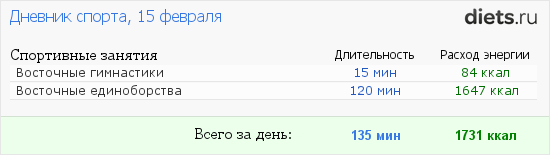Всего за день:1645 ккал Белки 69.8 г Жиры 45.2 г Углеводы 182.1 г