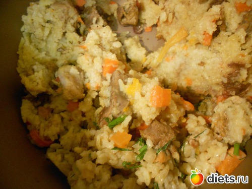 Плов - кроме мяса я добавила в него еще курагу и изюм: