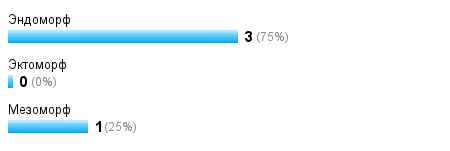Эндоморф - мягкая и гибкая мускулатура, круглое лицо, короткая шея, широкие бедра и большой запас жира. Эндоморф так же легко наращивает мышечную массу, как и мезоморф. Надо все же знать, что людям с подобным типом телосложения, следует прикладывать усилия, направленные на снижение процента жира в организме, для этого надо уделять большое внимание правильному питанию.