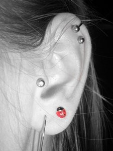 я третью зарастила(((( потерялась сережка.. и как-то вообщем, теперь от нее одни воспоминания( Надо пойти продырявить заново) Люблю когда в ушке много дырочек и сережки по убыванию..типа так)