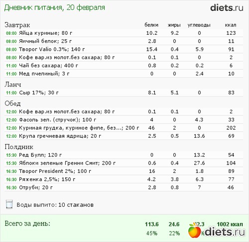 А! забыла! после тренировки меня еще ждет порция протеинового коктейля, а это где-то еще +30 гр белка.