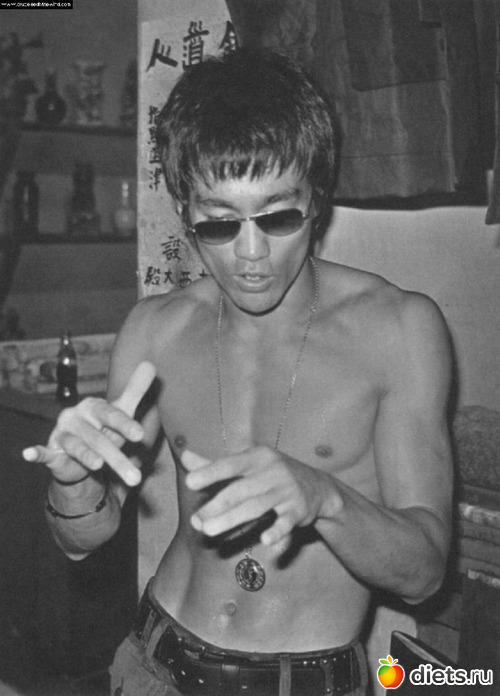 Ладно, вернемся к Брюсу Ли. Как я написала выше, его основным стиле был Вин-Чунь. Этот стиль боя делает акцент на ведении боя без оружия. Однако Брюс Ли также прекрасно овладел и оружием. А видео, где он зажигает нунчаками брошенные в него спички как минимум поражает. Позднее его уникальная способность овладевать различными техниками ведения боя позволяют Брюсу Ли изучить джиу-джитсу, дзюдо и бокс. А еще позднее Брюс Ли школу каратэ, где преподает собственно разработанный стиль Джит Кун-До, который он дорабатывал и совершенствовал до самой смерти. Он также разработал собственную систему питания, уделял очень большое внимание общеатлетической подготовке и занятиям в тренажерном зале. Он великолепно развил своё тело и опубликовал свои методики тренировок и упражнения, ставшие очень известными. Ли также подвергал себя огромным нагрузкам в экспериментальных целях, даже испытывал себя электрическим током. В то же время Брюс Ли очень много времени уделял съёмкам, пытаясь довести каждое своё движение на экране до совершенства. Ли был амбициозным и очень требовательным к себе человеком. Но, несмотря на свой экранный образ, он был очень вежлив и обходителен в общении, очень уважительно относился к окружающим.