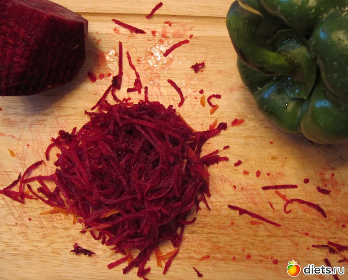 Натереть на терке : свеклу, морковь, кабачок, редис.