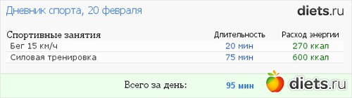 2) на сегодня тренировка не была запланирована, но пойду на кардио (час=800 ккал)