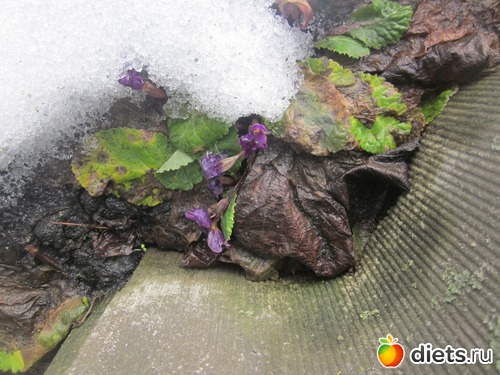 У неё точно депрессии нет! А из-под снега первоцвет пробивается.