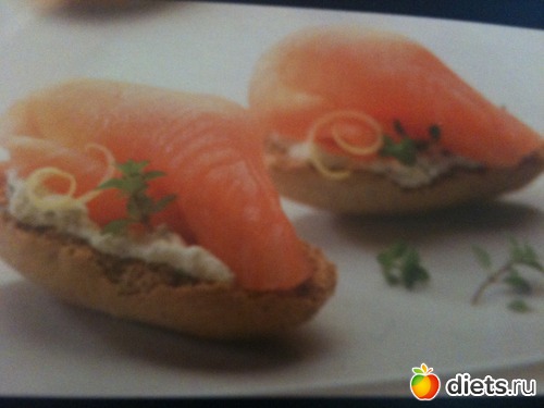 Сделать тосты со сливочным пате, сверху - ломтик соленого лосося.