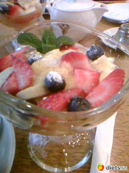 Еще был фруктовый салат (не удивляйтесь чайнику на заднем фоне, это из другого дня, но суть та же):