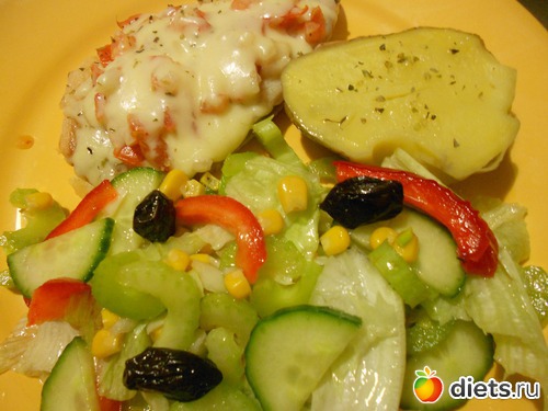 Основное блюдо - рыба по рецепту Джудит, картошка, салат: