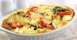 Цуккини нарежьте кружочками. Помидоры ошпарьте, снимите кожицу, мякоть нарежьте дольками. Фасоль, цуккини и крупно нарезанный шпинат ошпарьте по отдельности, охладите, затем перемешайте, добавив брынзу, нарезанную кубиками, помидоры, зелень, соль и перец. Яйца взбейте со сливками, добавьте сыр, рубленый чеснок и соль. В смазанную маслом форму выложите овощи с брынзой, залейте яично-сливочной смесью, посыпьте кунжутом и запекайте 35 минут при 210 С.