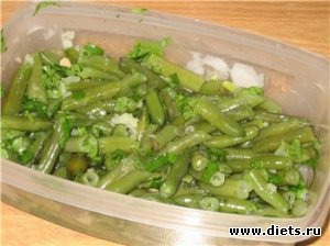 Стручковая фасоль - казалось бы ничего хитрого. По мне, так стручковая фасоль вообще практически безвкусная, но в этом рецепте главная "фишка" в острой и пряной заправке. Так что, иногда, когда хочется чего-то поострее, я готовлю этот салатик.