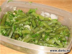 3. Поместить фасоль и маринад в емкость с крышкой, хорошо потрясти, чтобы все перемешалось.