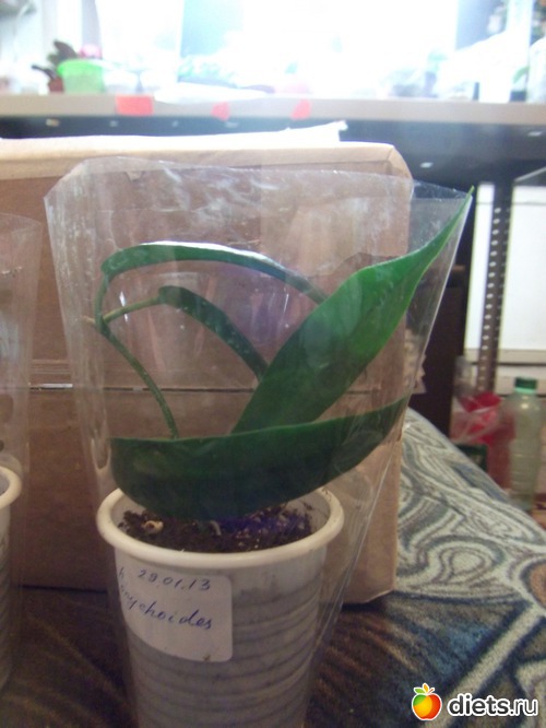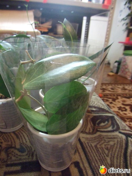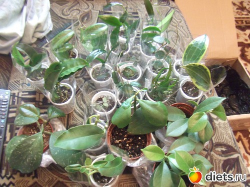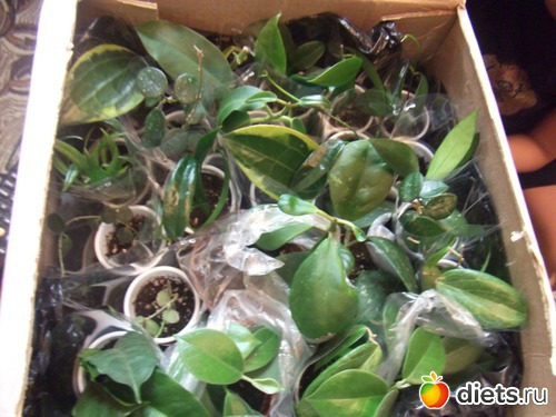 Так они упакованы. Там стоит дата посадки, название сорта на каждом стаканчике с черенком. )) Всего привезла от одного коллекционера из дома 24 хойи (9 мне и 13 маме, 14 для нее у меня уже была куплена). В итоге разных видов хой в тот день - 13, потому как мои - это дубли от особо понравившихся, заказанных маме.