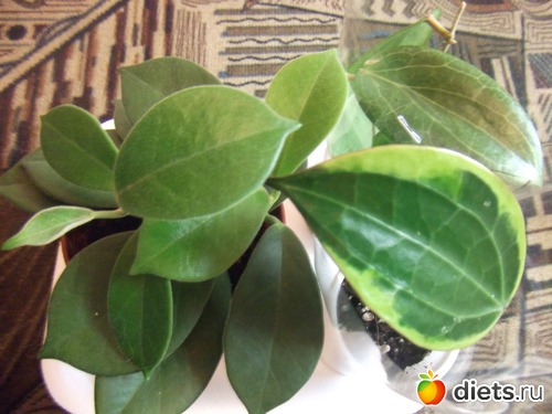 И последняя, которую, к сожалению даже в инете не могу найти, имеет продолговатые темно-зеленые листья с сиреневыми вкраплениями.