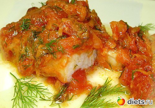 Рыба, тушёная с чесноком На 100г. блюда – 130ккал.
