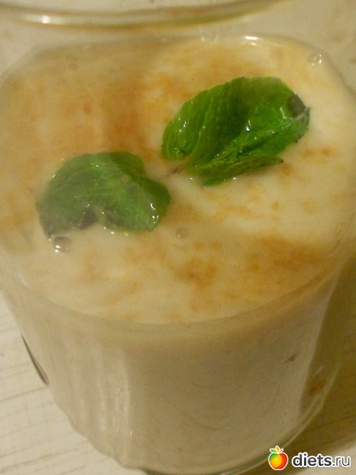 Завтрак - кофе, банановый смузи (банан, йогурт, сок, корица):