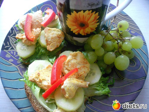 Обед - выбрала сандвич с цыпленком карри, виноград, чай: