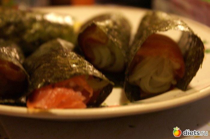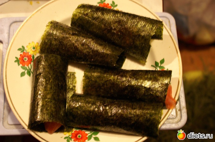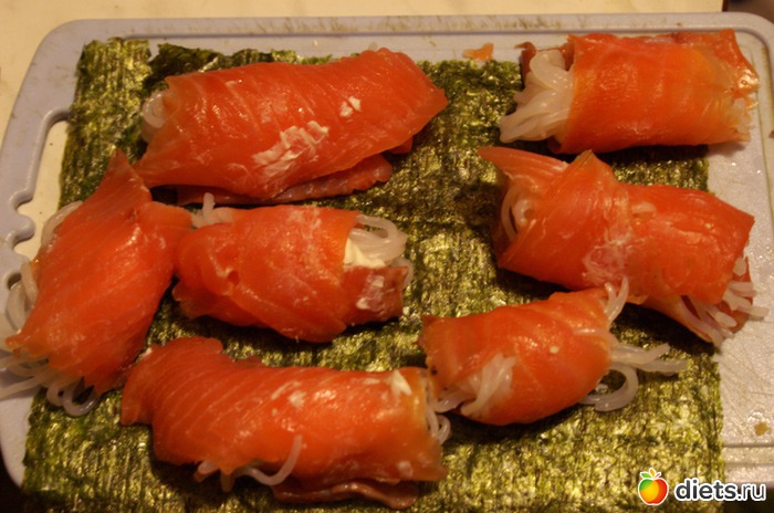 PS. Рецепт конечно далек от классики с рисом, да и вообще это мой первый опыт какого бы то ни было "сушевания", так что, если есть в группе строгие поклонники японской кухни, - не ругайтесь плз