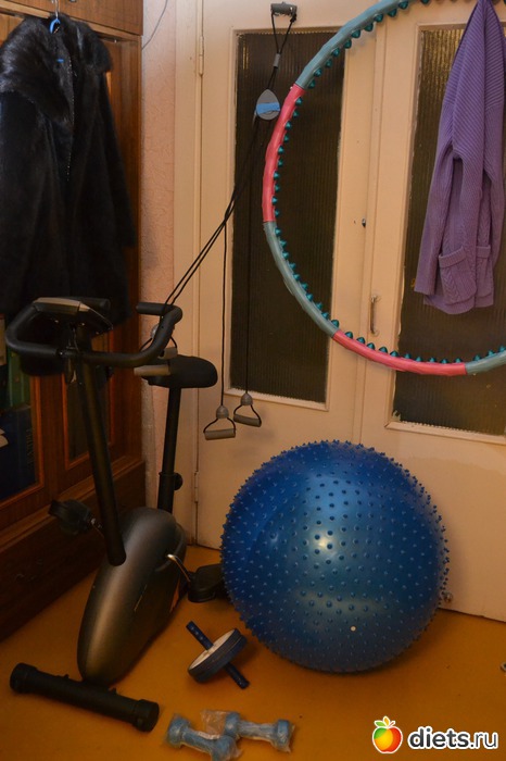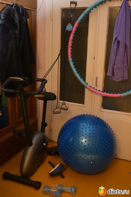 на мяче - ноги на нем сама на полу и поднимала торс (нагрузка на пресс) - по 20 раз 5 подходов (последний раз еле доделала),