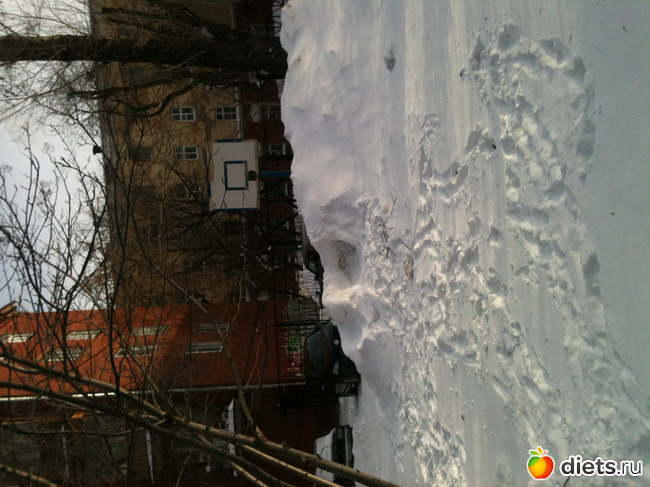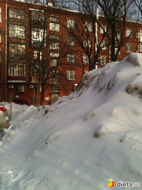 Просто снег во дворе убирали и пока еще не вывезли. Зато детишкам раздолье, они и на ледянках с этой горки, и просто так ))) Аж завидно - в мое детство снег только лопатами убирали, он был равномерной такой горкой по периметру двора... ну и не так высоко...