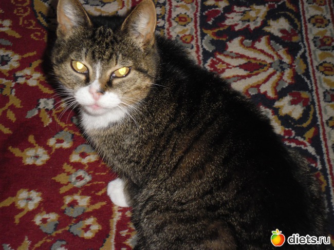 развалится на моей "гигантской" 5тиметровой кухне под ногами, да еще глядит так укоризненно, и мякает, когда через него перешагиваешь, типа "ходишь тут, спать не даешь!"