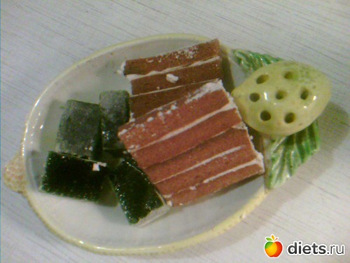 попили чайку с яблочной пастилой и крыжовенным мармеладом (очень маленькие кусочки):