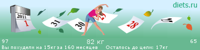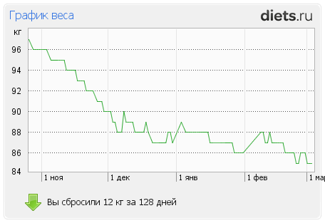 Диета – 1)считаю калории, сначала было тяжело, сейчас это, похоже, стало привычкой. Удивилась, что никогда не любила числа, а оказывается, они меня конкретно мотивируют. Первый месяц было сильное желание избавиться от лишних кг, аппетита не было особого, 800-1300 калорий держала все время без усилий. Через 2,5 месяца (как раз с нового года) начались срывы и очень частые. Происходили они на фоне нервного напряжения. Сказать точно, что спровоцировало, не могу. Калории увеличила в основном до 1300-1700 последние пару недель – ощущения, что могу сорваться, пока не появляется.