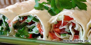 Свернуть из лаваша рулетики, накрыть пищевой пленкой и оставить на столе 10-15 минут.