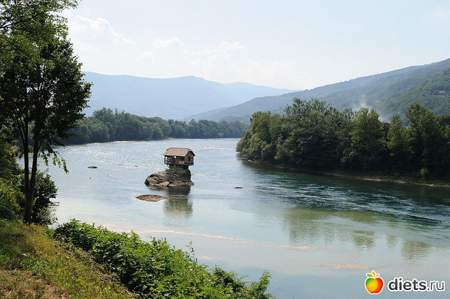 Этот необычный домик посреди сербской реки Дрина был построен местными ребятами порядка сорока пяти лет тому назад. Главной целью строительства стало создание уединенного места отдыха. И им это удалось.