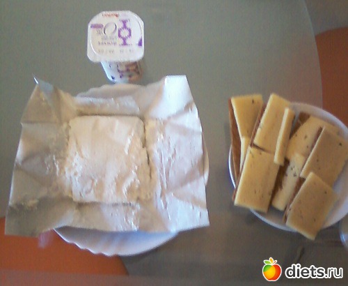На ужин прибежала... Нет, прилетела... Хотя нет, примчалась со скоростью ракеты после работы (уж очень, пардон, хотелось ЖРАТ!!!) без десяти шесть и сразу же заточила пачку 1,8-% творога с криспами и 50 граммами российского сыра. Ах, да, гадкий ашановский йогурт 0-% жирности чуть не забыла... Собственно, вот: