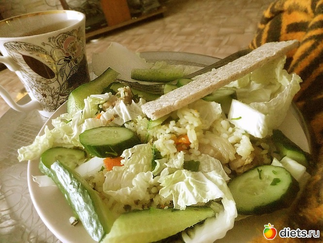 На фото мой обед, недавно кушала, было вкусно и сытно) а Всего 400 с чем-то калорий)Засчет плова столько получилось, а можно сделать еще меньше)