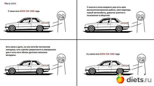 Надпись на оооочень грязной машине "Мыть не буду - она наказана!"....