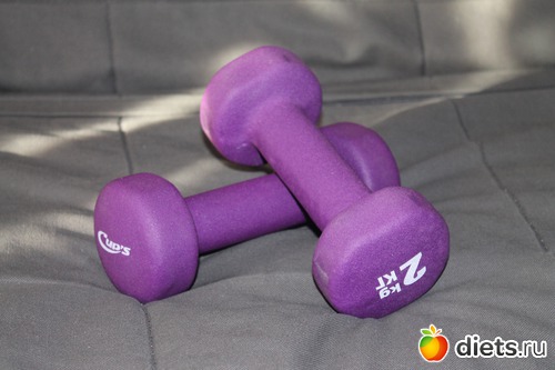 Итак, на днях я порадовала себя и приобрела для домашнего пользования...ммм...гантельки...да-да, они еще и фиолетовенькие, как раз к моей футболочке...