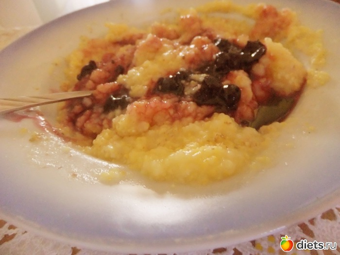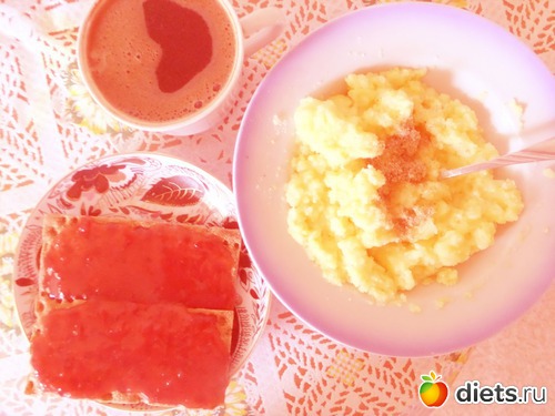 Кукурузная каша+варенье яблочное+варенье смородиновое(можно одно)+2 конфетки