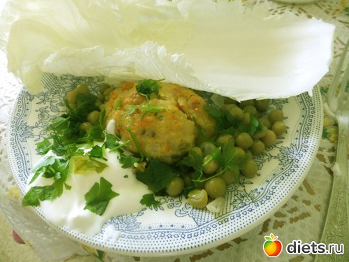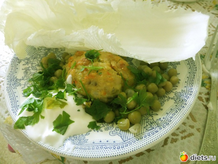 Зеленый горошек+пекинская капуста+котлета+зелень