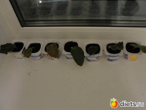 С фиалками история продолжается... Пересадила "окоренившиеся" листики в почву. Поливаю, жду