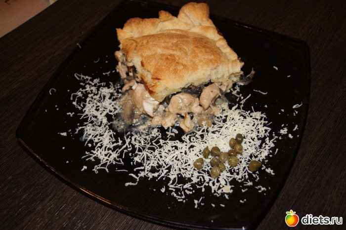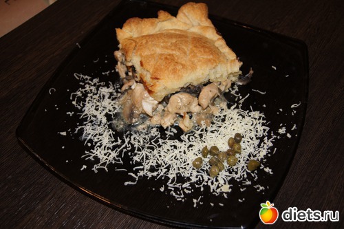 Приготовила сегодня для домашних пирог из слоеного теста с курицей и шампиньонами.