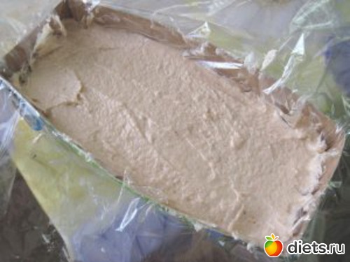 7. Накрываем получившийся террин остатками пленки и ставим в холодильник для застывания на 4 часа.