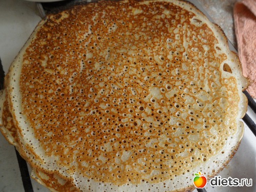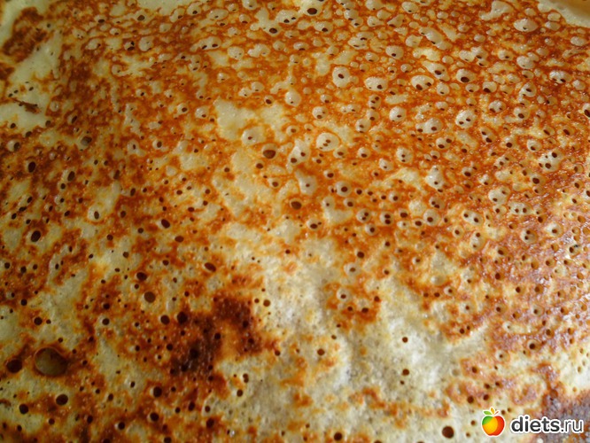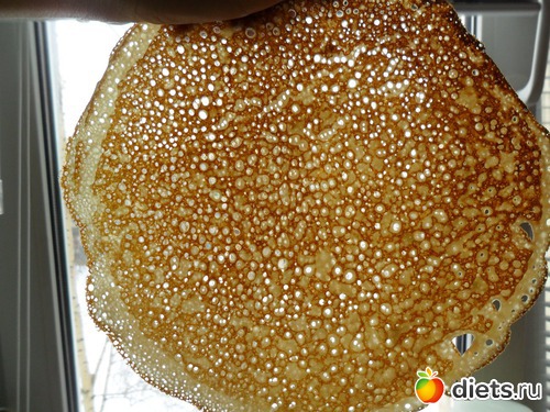 Главное!: Чтобы блинчики получались дырчатыми, сковорода должна быть очень горячей! На слабом огне, дырочки не получаются.