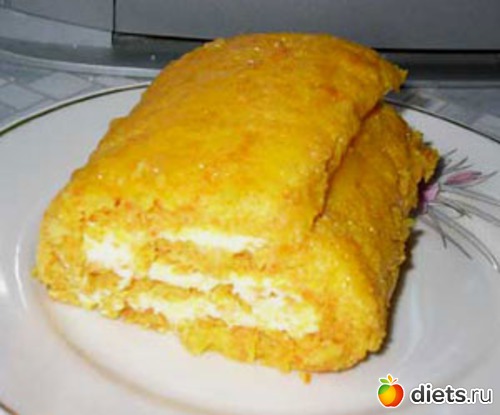 К слову сказать, присутствие моркови практически не ощущается – нежный бисквитный рулет с апельсиновой-лимонной ноткой.