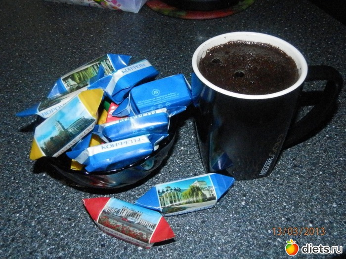 а потом я подумала, что очень рада, что я заслужила чашку кофе с конфеткой -