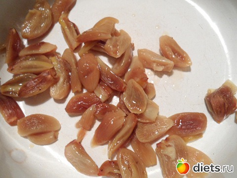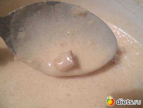 Шкварки можно положить тоже в соус. Любители похрустеть могут посыпать ими потом готовое блюдо.